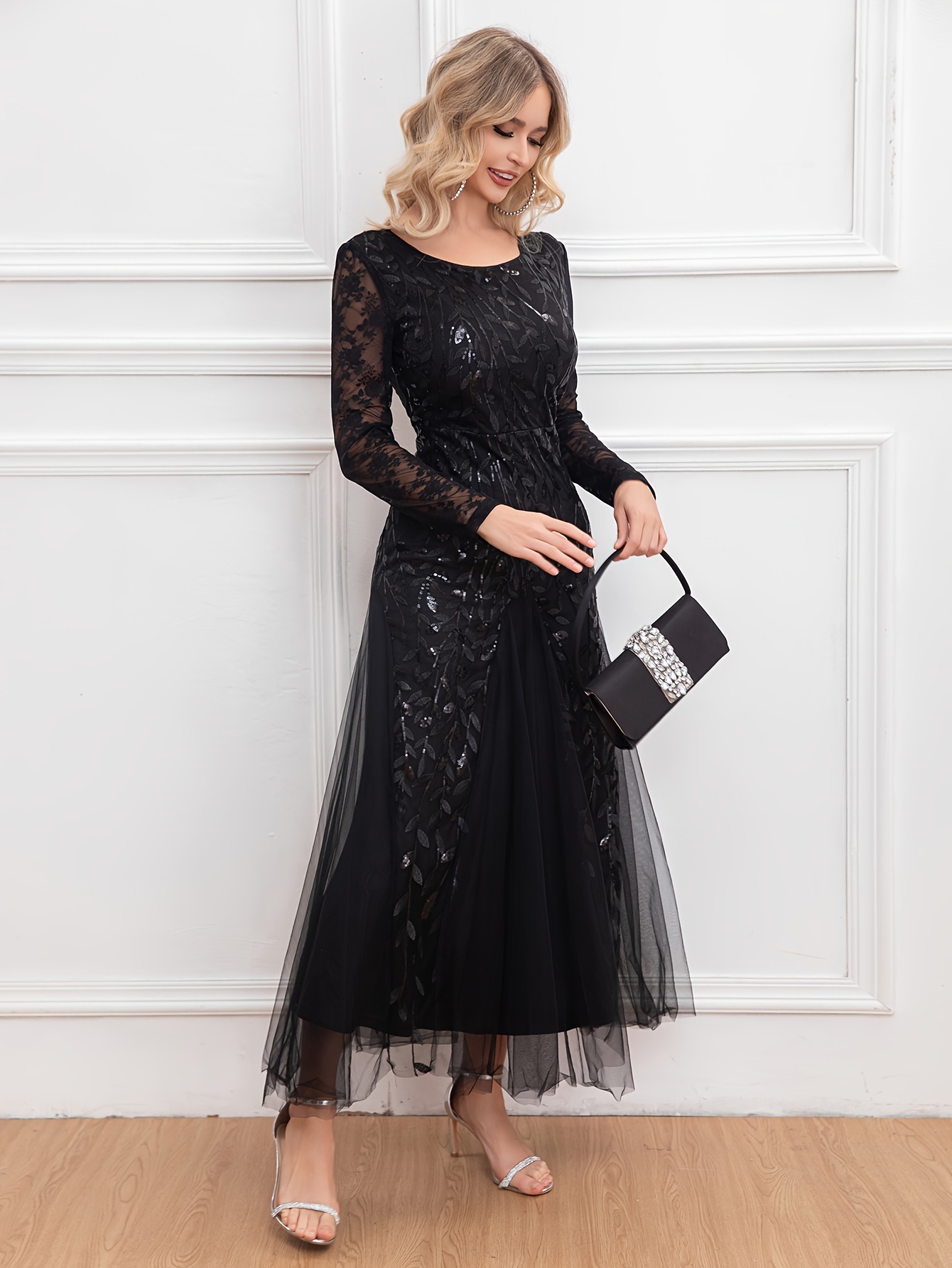 Elegant Directional Light Luxury Sequined Heavy Work Women'S Banquet Evening Dress