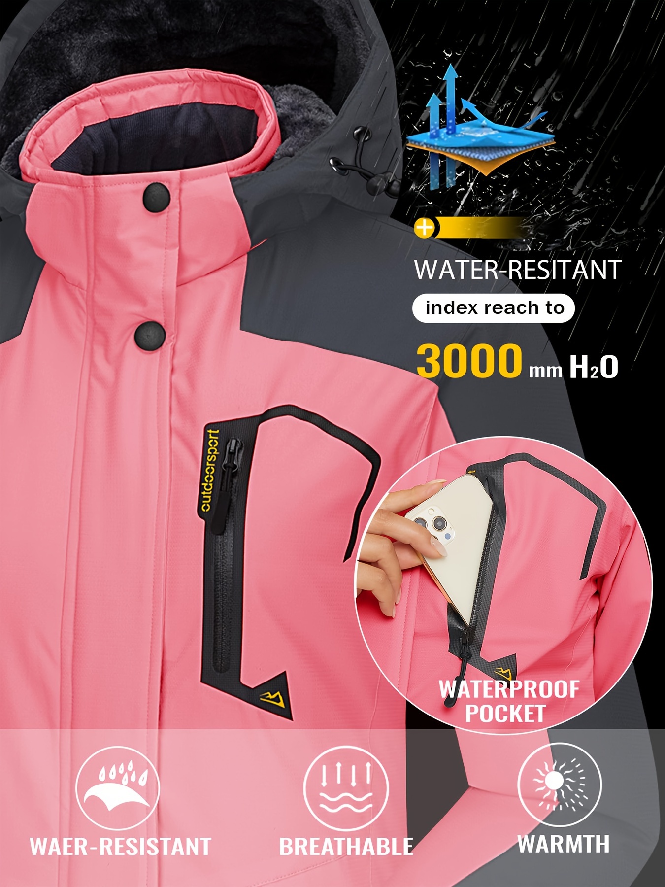 Large-size Women's Waterproof Soft-shell Ski Jacket with Fleece Lining, Hooded, Multiple Pockets, Warm, Comfortable, Bright Colors, Plus-size Coat for Outdoor Sports, Snowsports, Snowboarding, Hiking, Mountaineering, Camping, Daily Casual Work