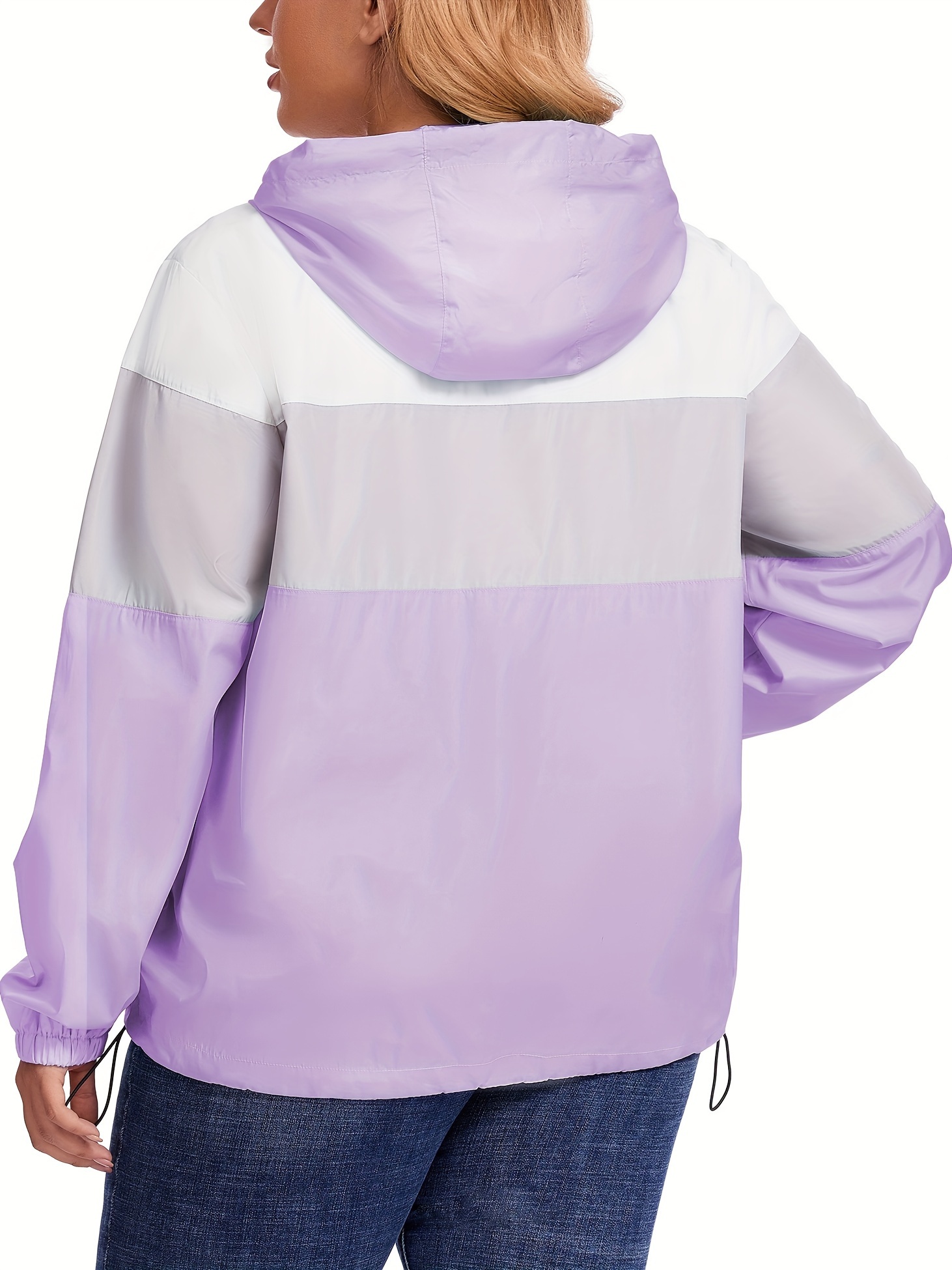 Plus Size Raincoat, Women Water Resistant Rain Jacket, Packable, Outdoor Hooded Windbreaker For Women