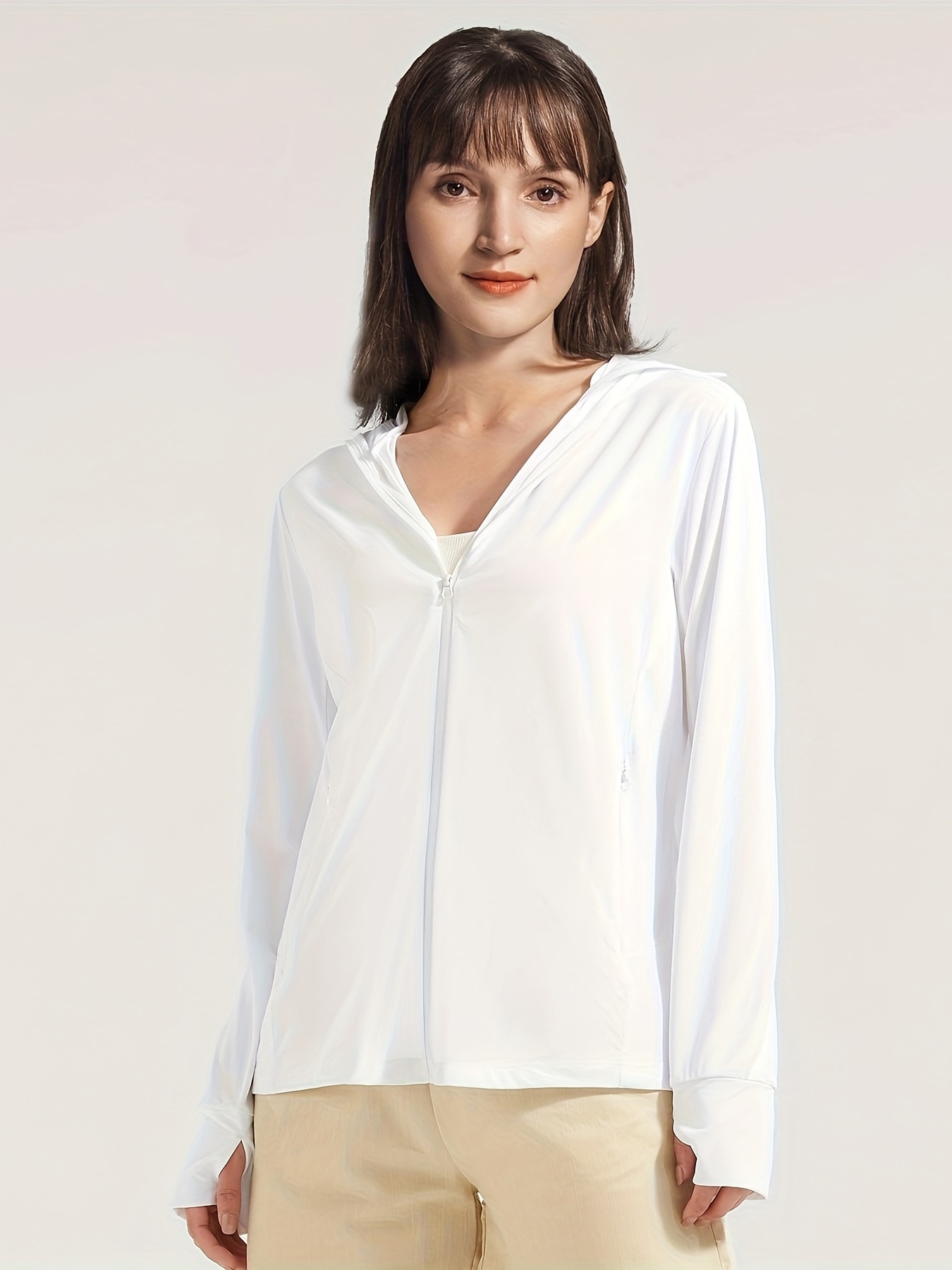 Women's Plus Size Solid Lightweight Hooded Sports Jacket, Spring/Summer, Pockets