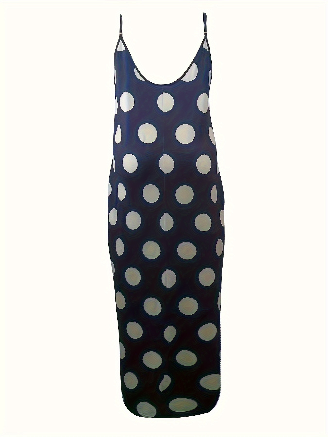 Plus Size Polka Dots Print Tank Dress, Elegant Sleeveless Slant Pockets Strap Dress For Spring & Summer, Women's Plus Size Clothing