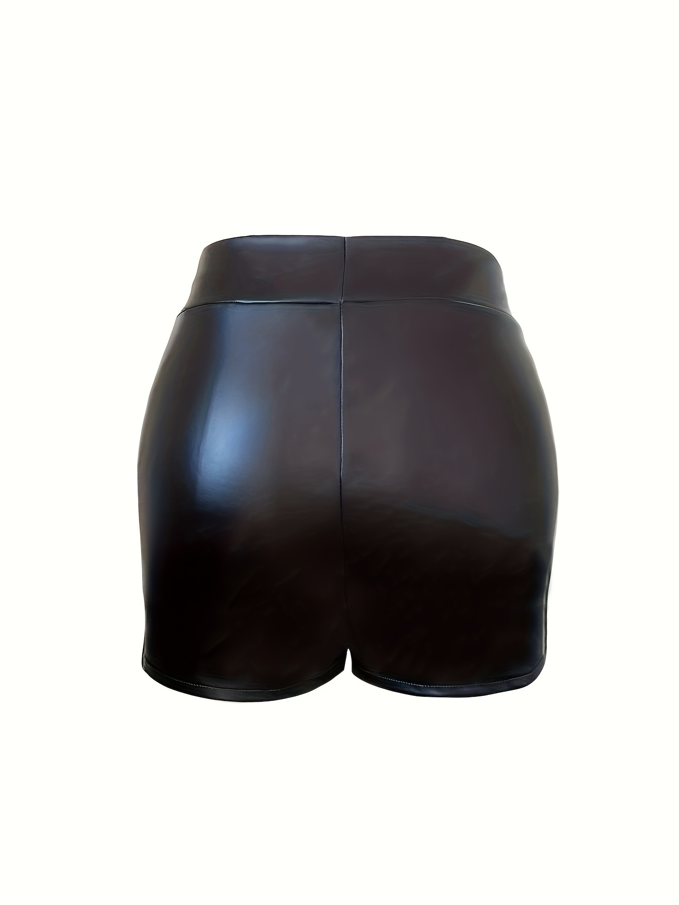 Elegant High-Waist Faux Leather Shorts for Women - Stretchy, Solid Color with V-Shaped Detail, Machine Washable