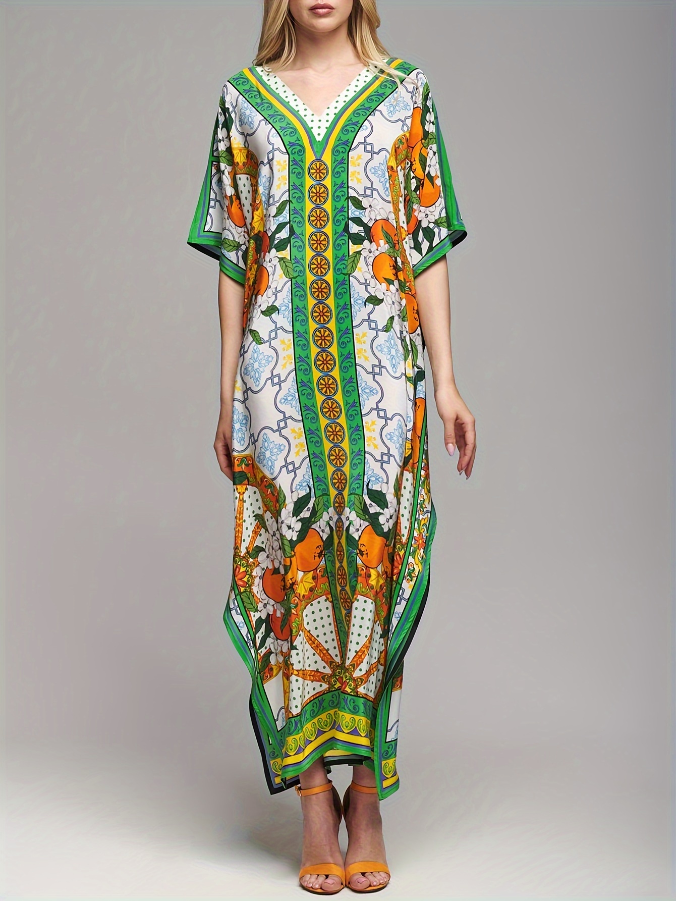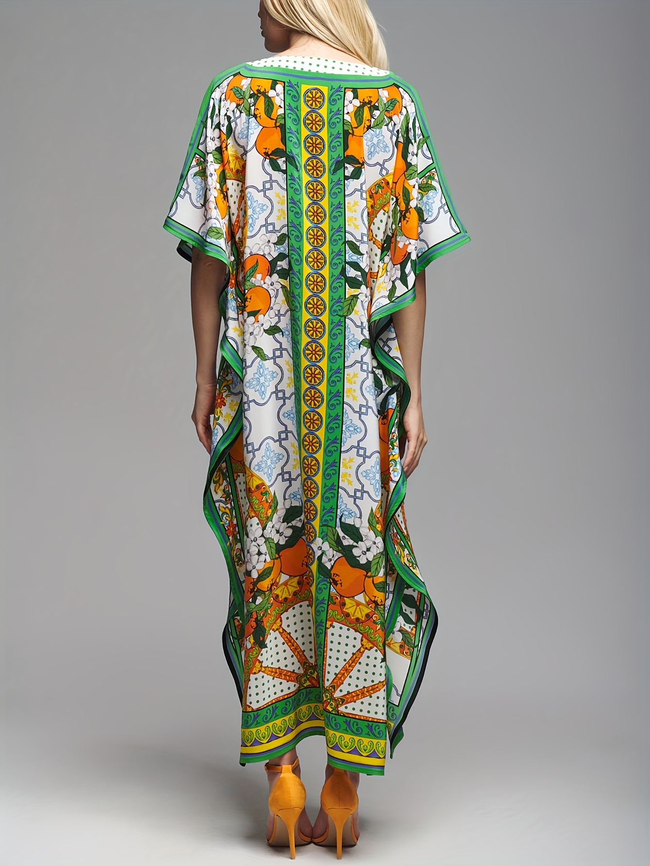 Plus Size Allover Print Coverup Dress, Vacation Batwing Sleeve Loose Beachwear Dress, Women's Plus Size Clothing