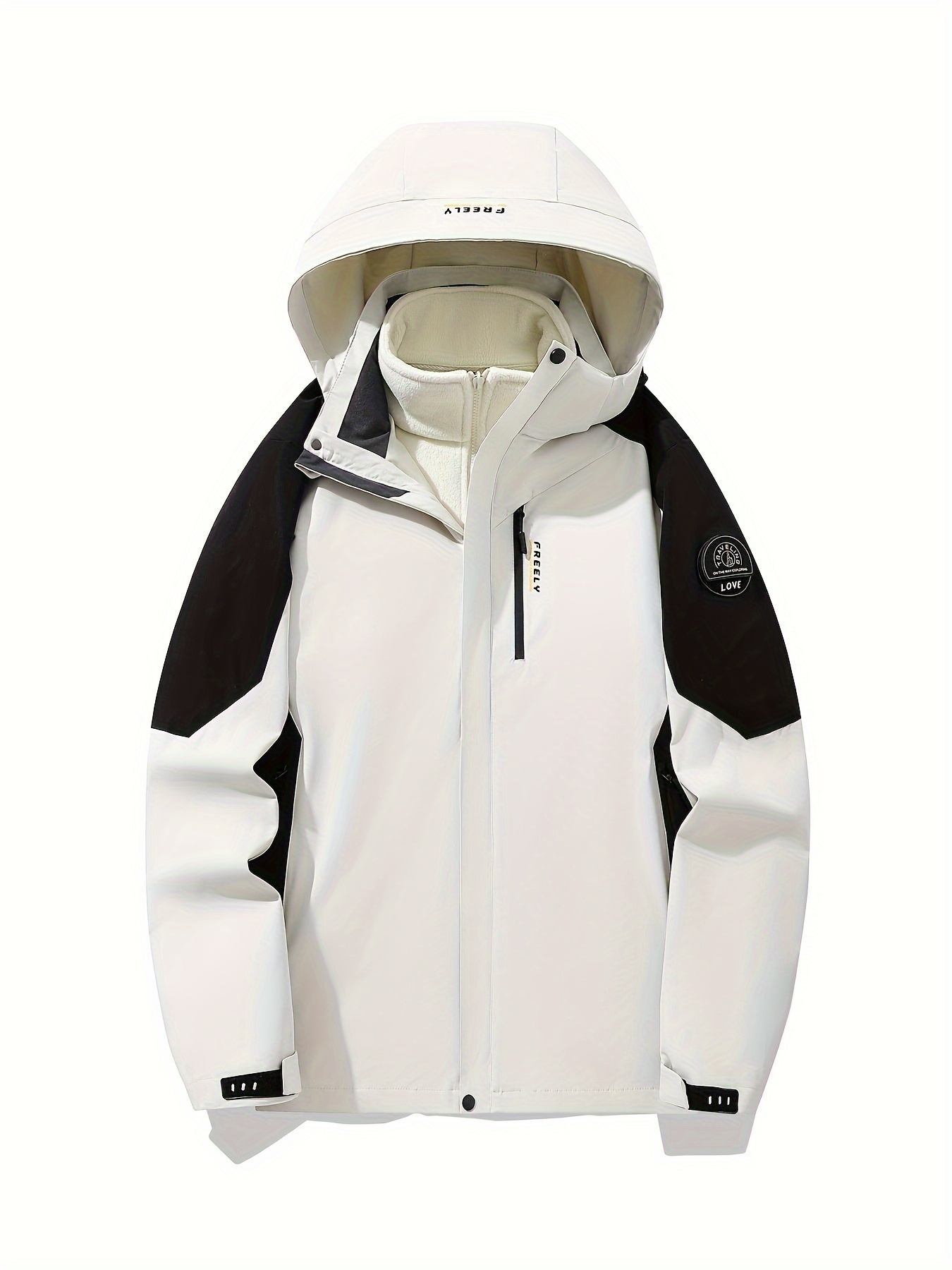 Women's Plus Size Outdoor Sports 3-in-1 Jacket - Hooded Color Block Waterproof Coat For Fall & Winter