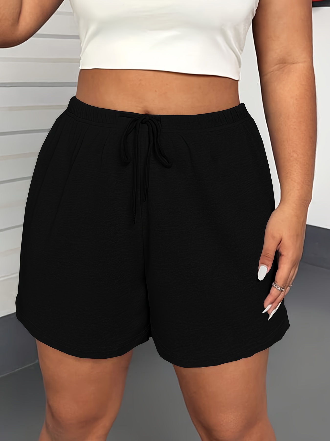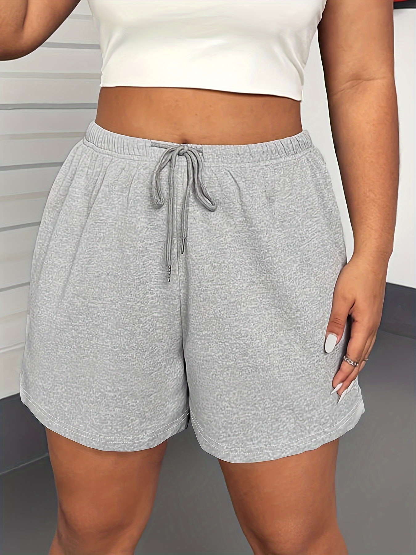 Solid Color Drawstring Shorts, Vacation Loose Shorts For Spring & Summer, Women's Clothing