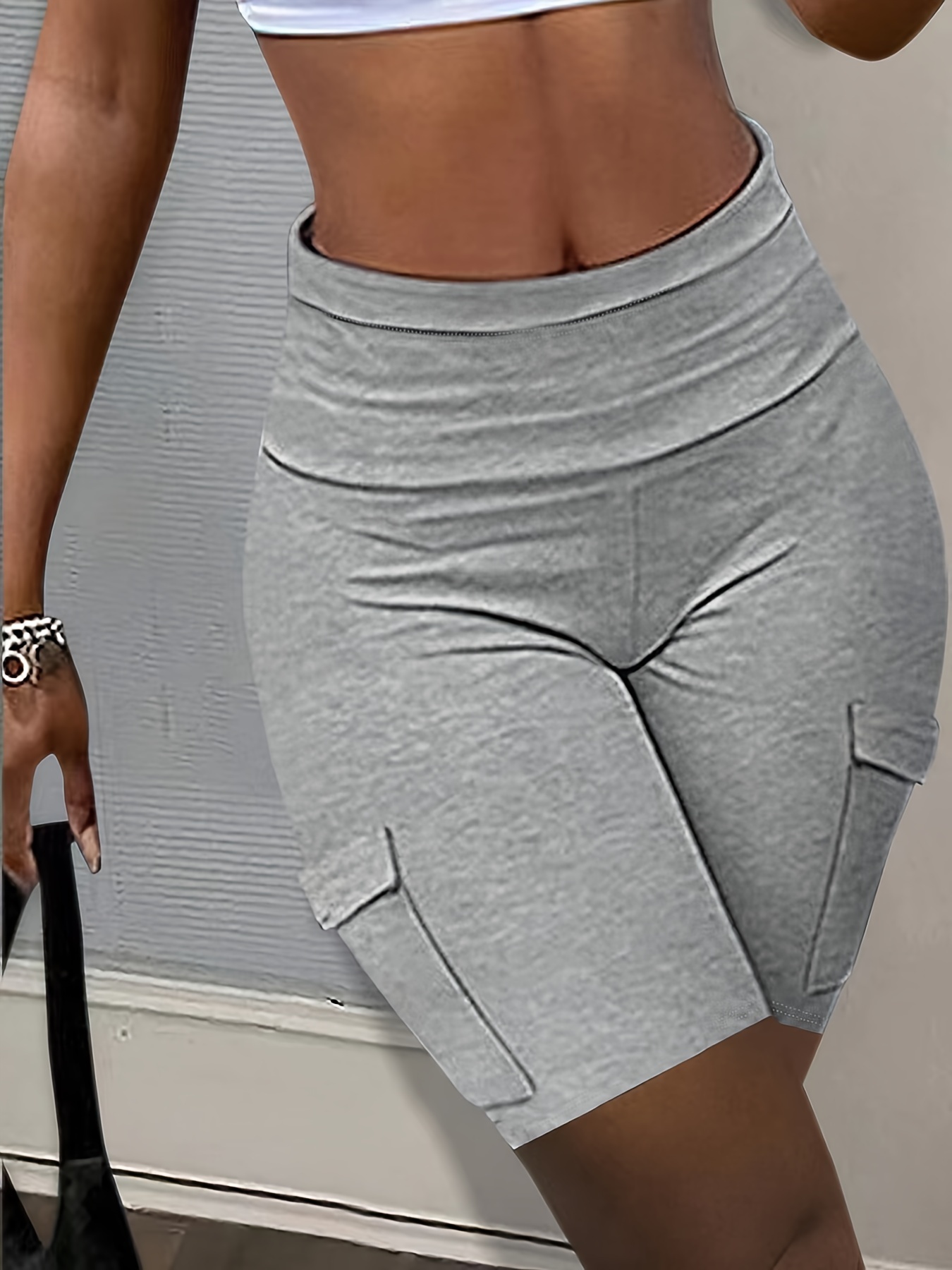 Solid Color High Waist Shorts, Casual Skinny Fit Shorts For Spring & Summer, Women's Clothing